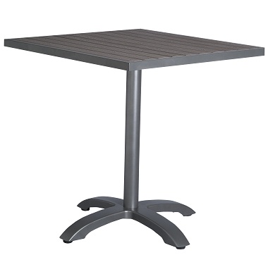 * Wood-Like Slats; * Moisture Resistant; * All Weather Endurable Height: 30" Available Sizes: - Square & Retangular: 24"x24", 28"x28", 28"x46" - Round: 28"R (three types of table bases to match the tops) |